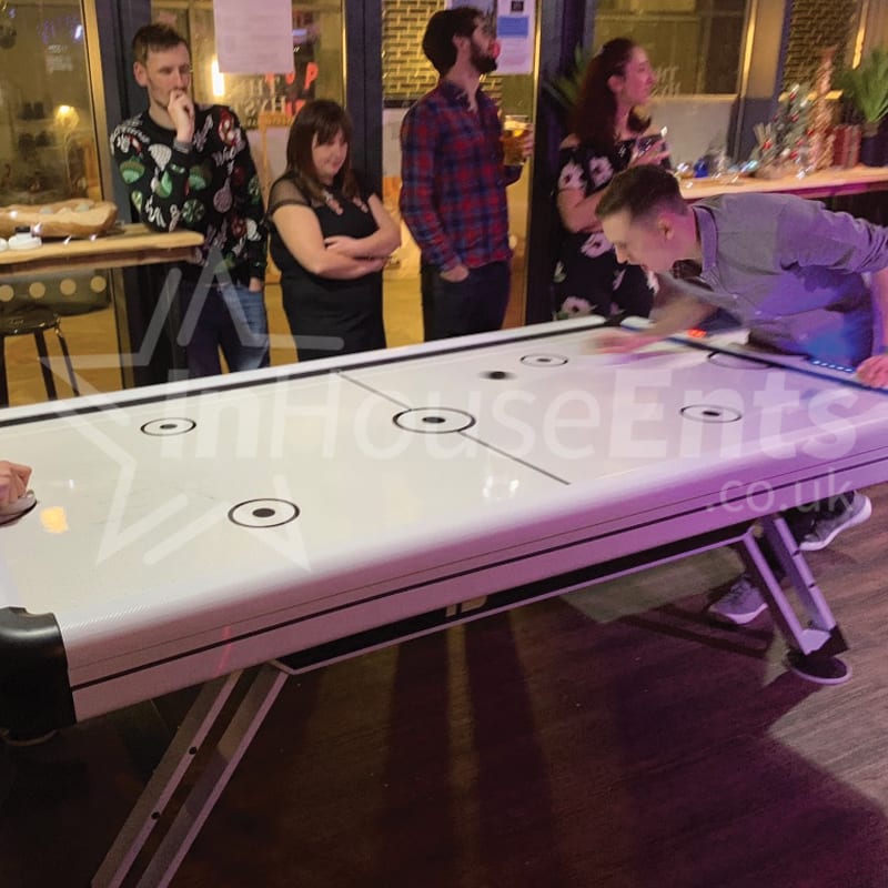 Take yourself back to the traditional games arcades of your youth and imagine having that life sized Air Hockey Table in your offices or home? We can now give you that wish! Our Air Hockey Table is available to hire for your next event and comes complete with bats and pucks ready to play. Its got some fantastic digital scoring so the first to 10 wins!