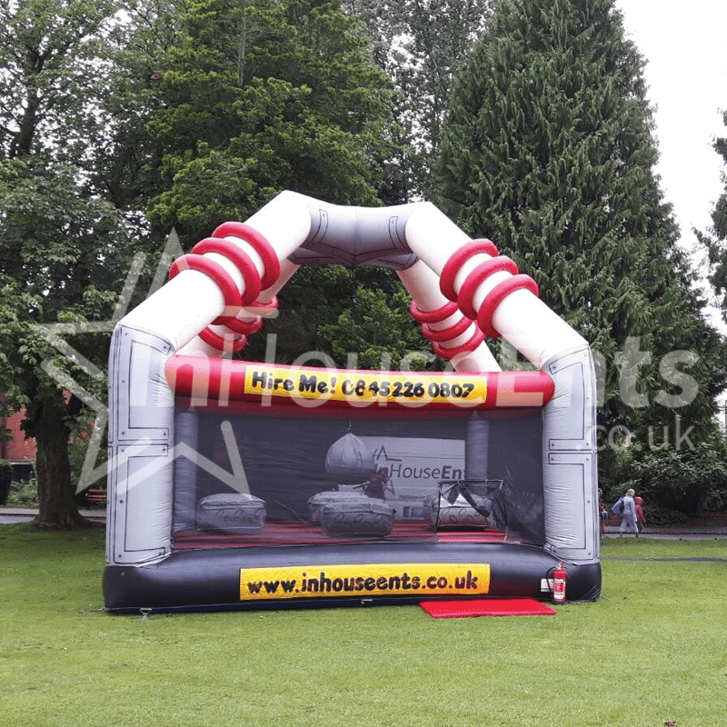Specification: Suitable for users over the age of 5 years. Max number of users 4 Requires 13amp 240v power supply within 25mtrs (or generator available at additional cost) Equipment Dimensions 20' w x 20' d x 19' h Operating area required 25' w x 25' d x 20' h Suitable for use both indoors and outdoors on grass or hard standing. Please advise which at time of booking.