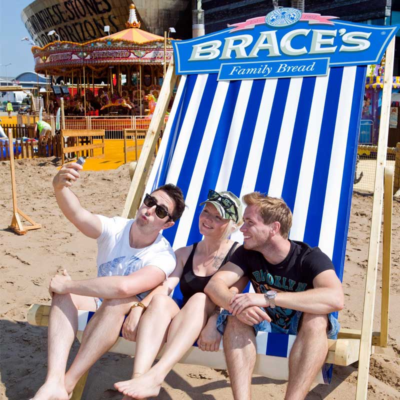 Our Giant Deck Chairs are available to hire all over the UK. Build in traditional candy stripe PVC they come in Red and Blue PVC options. our deck chairs are ideal for promotional events, photo opportunities as well as just a little beach party theming.