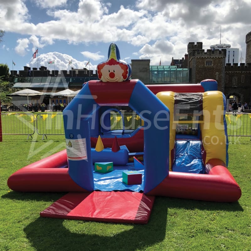 The inflatable circus play zone is specially designed with the toddlers in mind. If you are looking for an area, away from the boisterous teens and captivating adults then this is for you. The inflatable encompasses a small toddler slide, bouncy castle and ball pit. There is also a sensory zone along with soft play shapes. It really does give hours of fun!