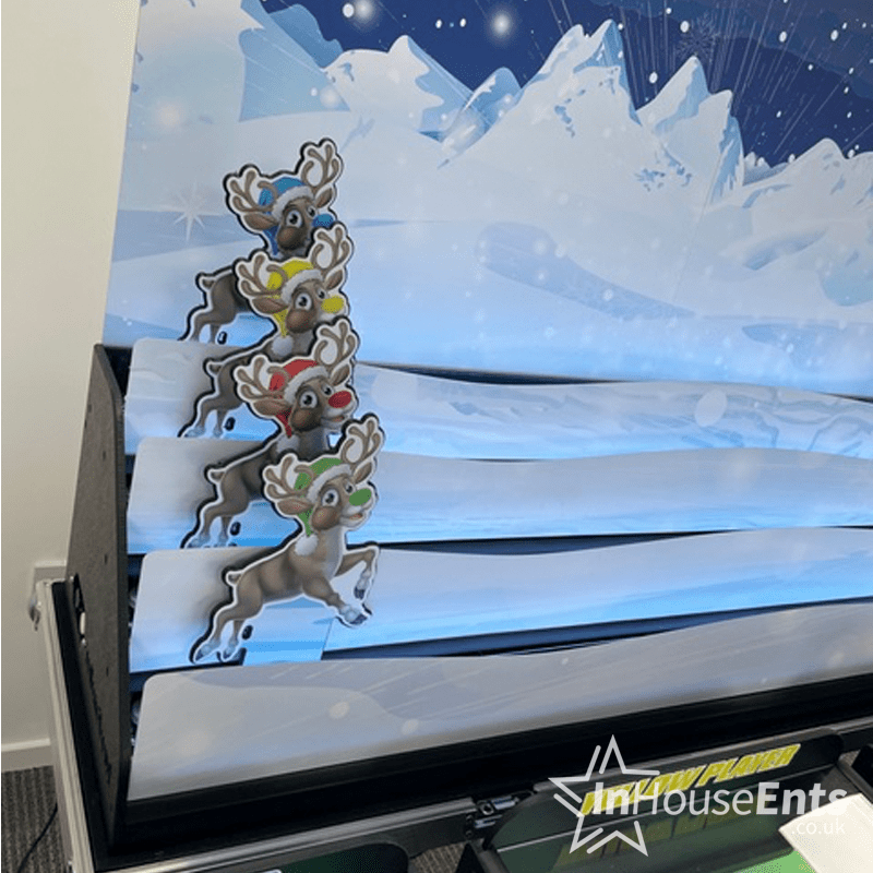 Looking to add excitement and festive fun to your Christmas party or event? Our Roll A Ball Reindeer Racing game is the perfect interactive attraction to get everyone involved! This thrilling four-player game is a modern twist on the classic fairground favourite, Donkey Derby, guaranteed to bring out the competitive spirit in your guests.