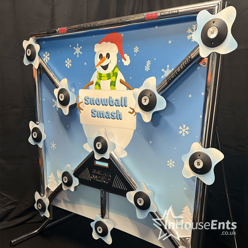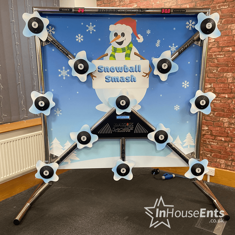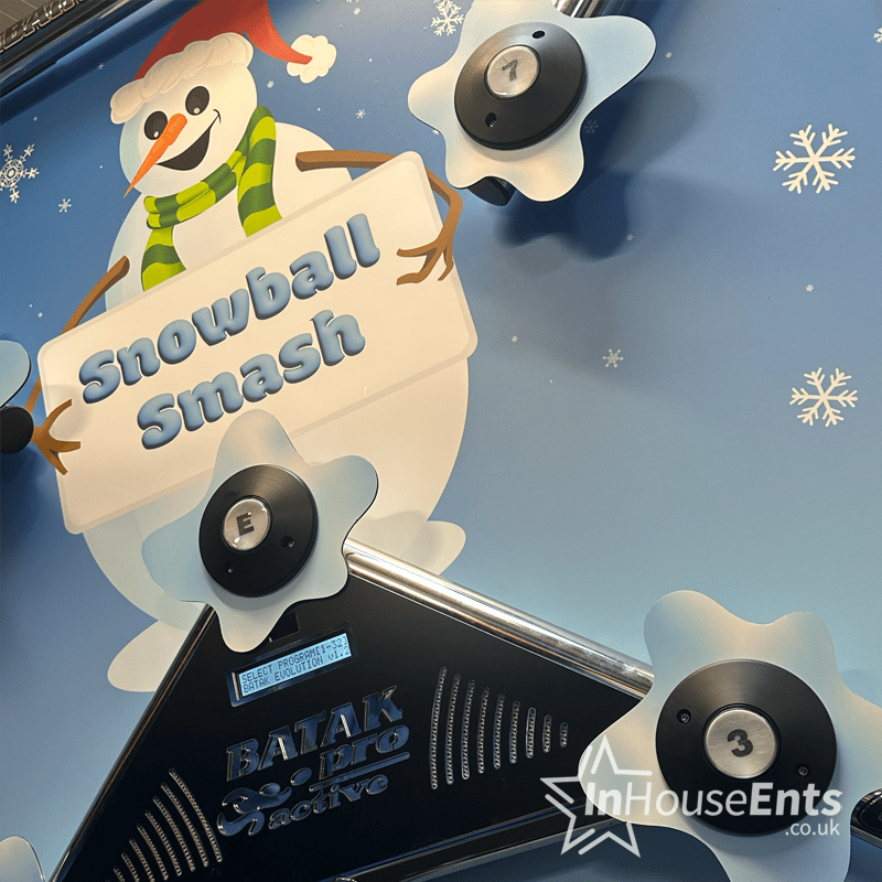 Hire Batak Pro - Snowball Smash Edition in Swansea, Cardiff, Bristol, London, Manchester, Liverpool, Birmingham, Leeds, Newcastle brings high-energy festive fun to your event. Fast-paced and family-friendly, this winter-themed reaction game tests speed, accuracy and coordination. It’s an instant crowd-puller and a perfect addition to Christmas parties, community fairs and corporate events.