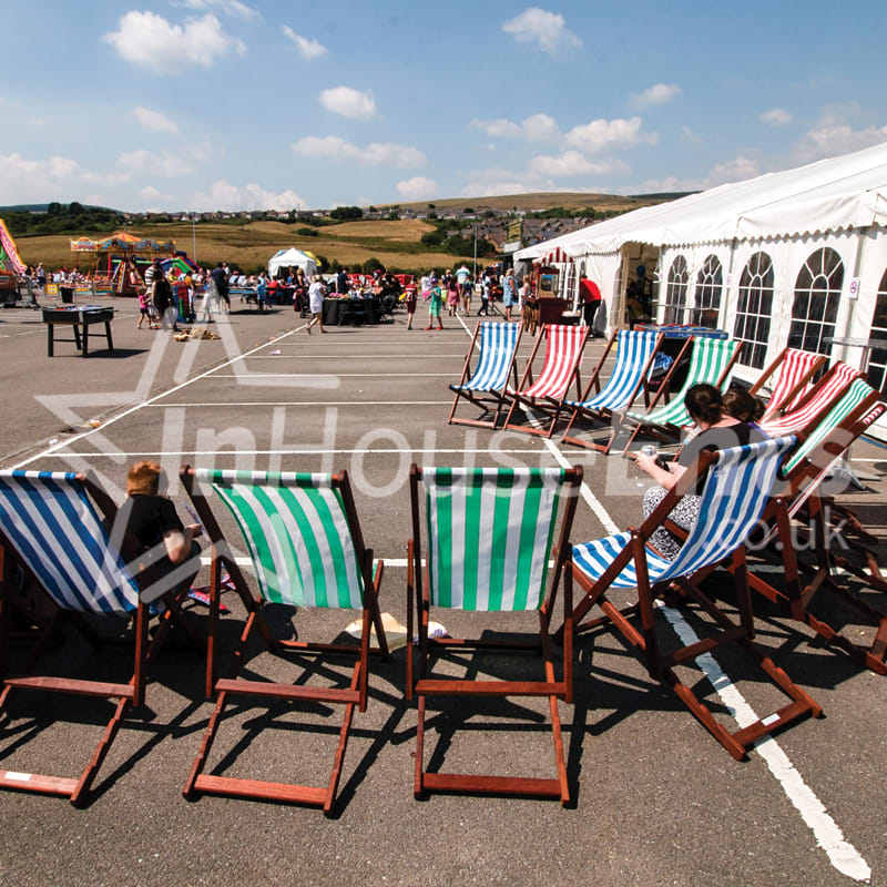 Deck Chairs can be hired across Wales for fetes, funndbays, carnivals and all manner of seaside themed events! We are an events company that is able to deliver, setup these deck chairs for your next event.