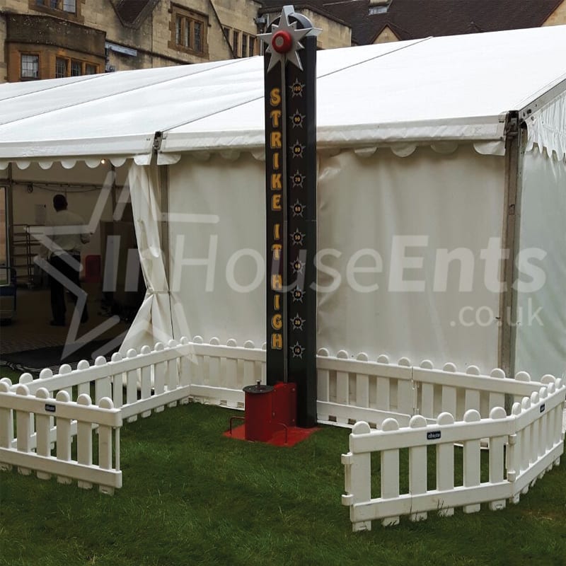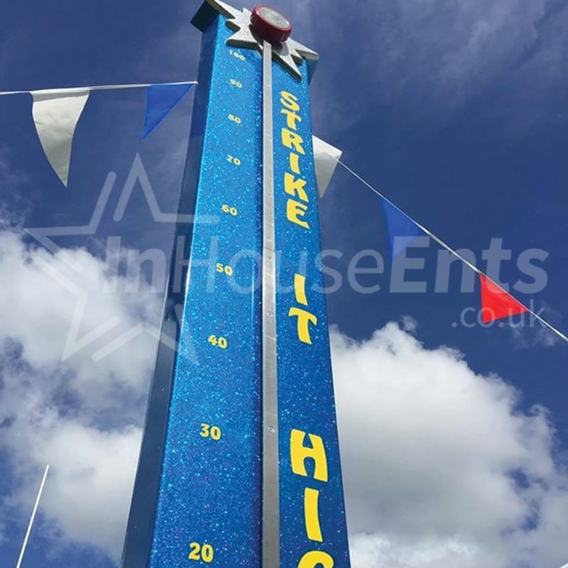 Test your strength with this traditional yet modern side show game. Our brand new brightly coloured Fairground High Striker is complete with digital L.E.D. Lighting.