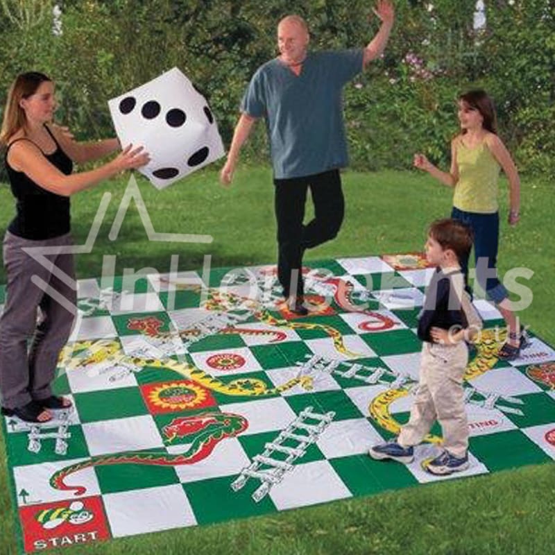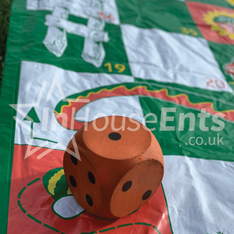 The Snakes & Ladder game is hired with a large dice & counters.