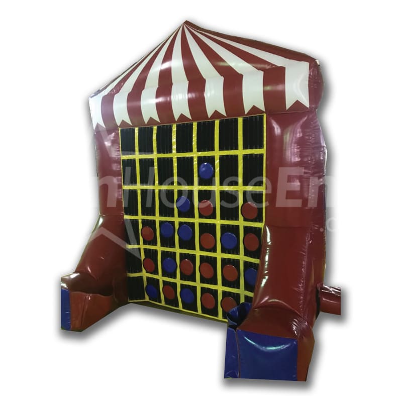 Standing tall and towering over you, our inflatable Connect 4 game is a sight to behold. With its vibrant colors and larger-than-life size, it is sure to capture the attention of everyone at your event. The velcro pieces are attached one by one, allowing players to strategically place their colored discs in an attempt to connect four in a row.