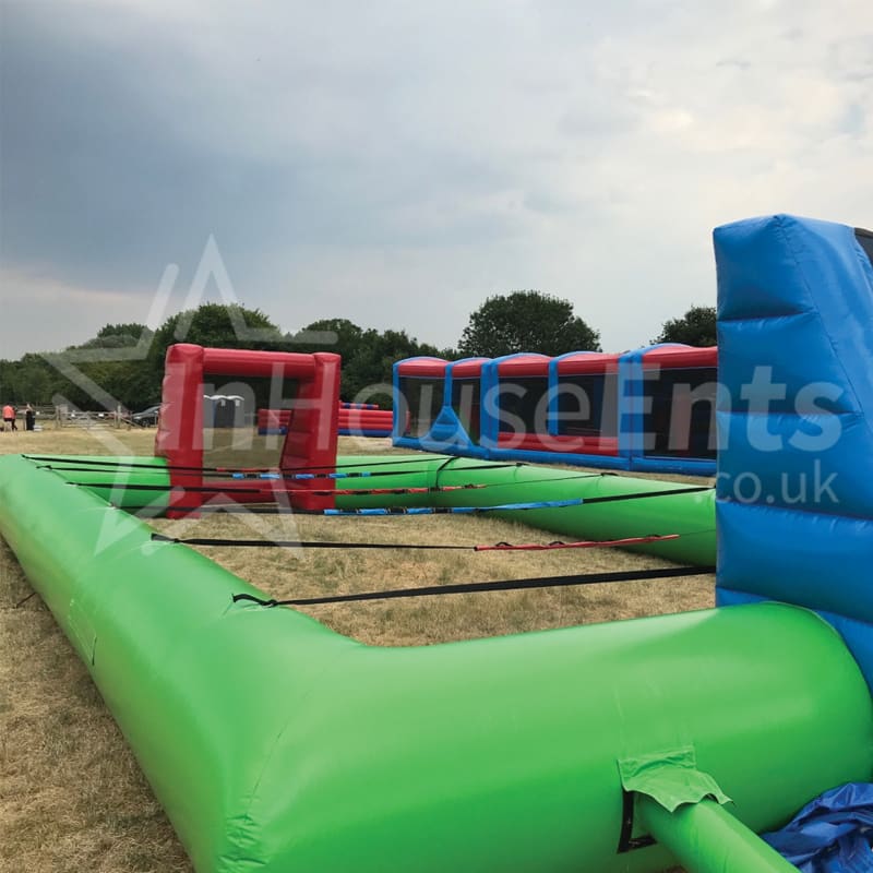 This inflatable is a twist on normal football, this is a life sized game of table football! Team work is vital to succeed in this game, you need to be able to communicate effectively to beat the other team!