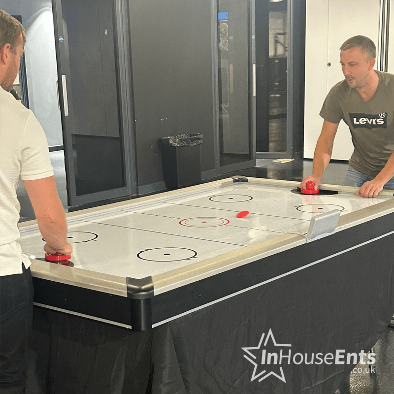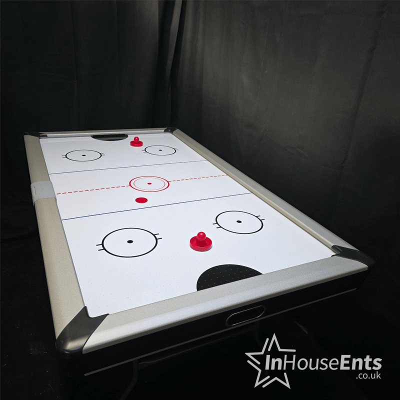 Take yourself back to the traditional games arcades of your youth and imagine having that life sized Air Hockey Table in your offices or home? We can now give you that wish! Our Air Hockey Table is available to hire for your next event and comes complete with bats and pucks ready to play. Its got some fantastic digital scoring so the first to 10 wins!