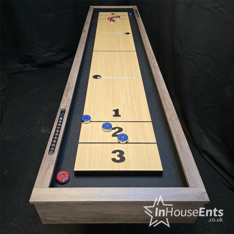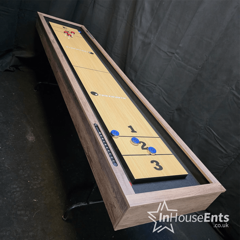 Ready to add a touch of tradition and fun to your next function? Choose us for shuffleboard hire in Swansea, Cardiff, Bristol, London, NEC, Excel, Manchester, Birmingham, and Silverstone. Our commitment to quality, customisation, and customer satisfaction sets us apart. Contact us today to discuss your requirements and secure your booking!