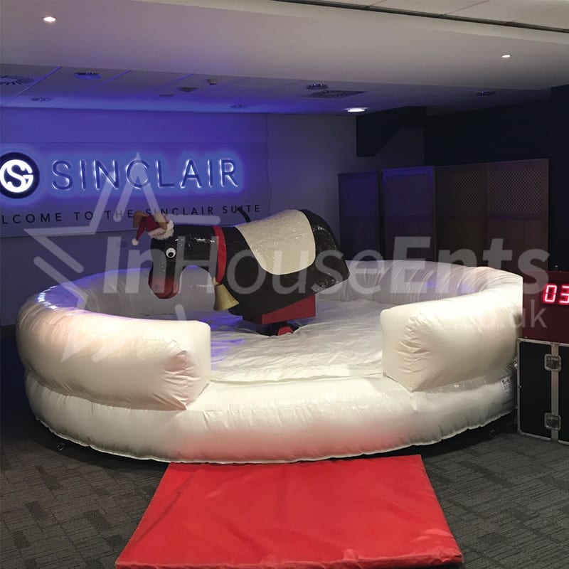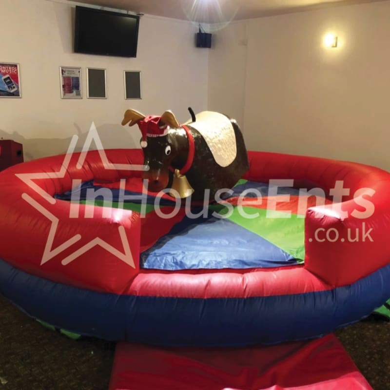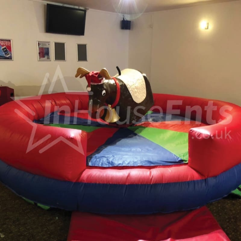 Safety First: Our Rodeo Reindeer is operated by trained staff, ensuring a safe and enjoyable experience for all riders. The inflatable base ensures a soft landing, so you can focus on the fun!