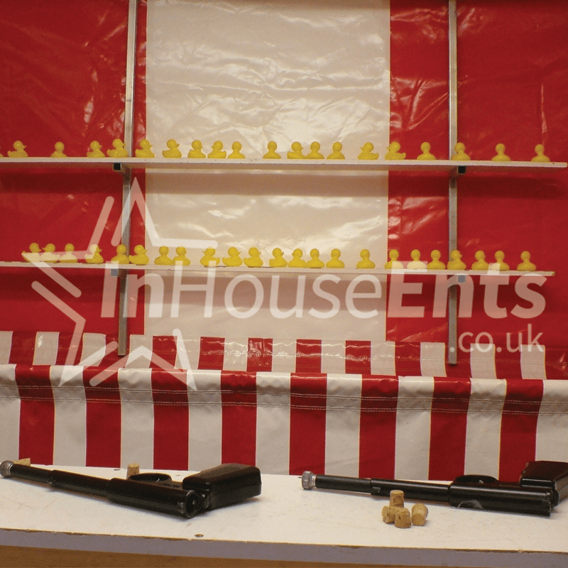 The Shooting gallery or Rifle range as its sometimes known as has been a fairground attraction dating back to the year dot. Often booked alongside other side stall games such as Hook a Duck, Tin Can Alley or even Prize Darts. Sides stalls really are suitable for ages with our huge range of exciting games to choose from.
