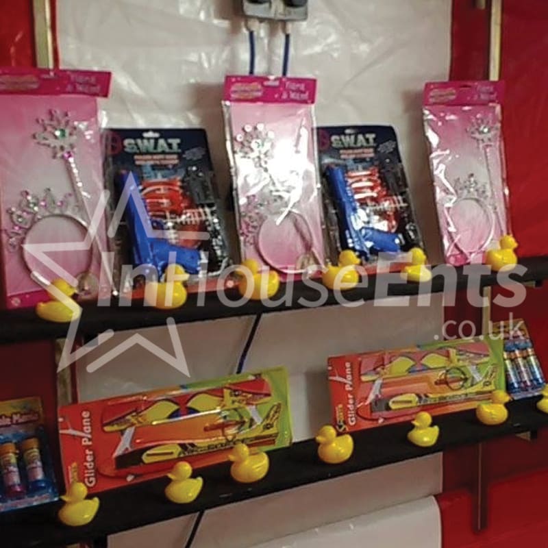The Cork Gun Side Stall is a professional side stall game that incorporates the use of safe cork rifle guns, along with either ducks or cans on the shelf. The idea of the game is to shoot off 1 or more of the items to win a prize. We always supply safety eye protection to ensure that participants and guests stay safe.